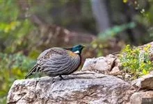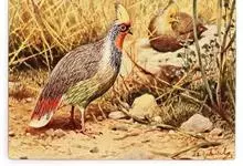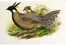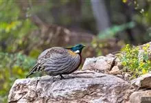 血雉雉科血雉属鸟类,别名血鸡、松花鸡,血雉的雄鸟大覆羽、尾下覆羽、尾上覆羽、脚、头侧、腊膜为红色,故称血雉。其别名甚多,各地皆异。在甘肃,因其胸侧和翅上覆羽沾绿,被称为“绿鸡”;因其羽毛形似柳叶,…全部>>