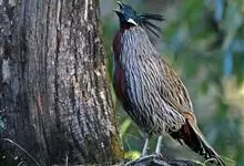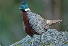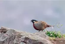 红腹角雉属于鸡形目雉科,雄鸟体羽及两翅主要为深栗红色,满布具黑缘的灰色眼状斑,下体灰斑大而色浅。雌鸟上体灰褐色,下体淡黄色,杂以黑、棕、白斑。全部>>