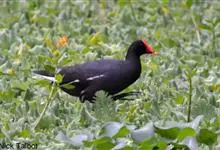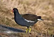 黑水鸡:是鹤形目、秧鸡科的鸟类,共有12个亚种。中型涉禽,体长24-35厘米。嘴长度适中,鼻孔狭长;头具额甲,后缘圆钝;嘴和额甲色彩鲜艳。翅圆形,第2枚初级飞羽最长,或第2枚和第3枚初级飞羽等长,…全部>>