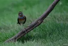 蓝点颏亦称“蓝喉歌鸲”,通称蓝靛颏儿。身体大小和麻雀相似,体长12-13厘米,体重17-18克。头部、上体主要为土褐色。眉纹白色。尾羽黑褐色,基部栗红色。颏部、喉部辉蓝色,下面有黑色横纹。下体白色。…全部>>