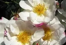 白蔷薇:直立灌木,高约2米;小枝有不等钩状皮刺,有时混有刺毛。小叶通常5,稀7,宽椭圆形或卵形,边缘有单锯齿,下面被毛,托叶宽,半边有锯齿。花排列成伞房状,直径6-8厘米;萼筒光滑,萼片卵状披针形,…全部>>