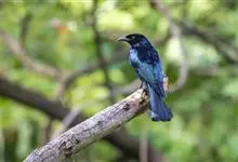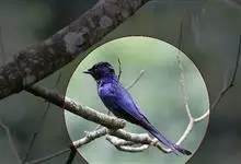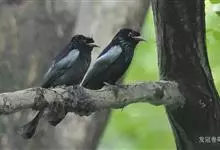 发冠卷尾是中型鸟类,体长28-35厘米。通体绒黑色缀蓝绿色金属光泽,额部具发丝状羽冠,外侧尾羽末端向上卷曲。栖息于海拔1500米以下的低山丘陵和山脚沟谷地带,多在常绿阔叶林、次生林或人工松林中活动。…全部>>