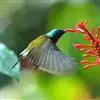 绿喉太阳鸟:共有9个亚种。小型鸟类,雄鸟体长13-15厘米、雌鸟10-12厘米。雄鸟前额至后颈、颏和喉辉绿色,头侧黑色,颈侧和背暗红色,两肩、下背橄榄绿色,腰鲜黄色,尾上覆羽和中央尾羽暗绿色,…全部>>