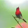 叉尾太阳鸟,雀形目太阳鸟科太阳鸟属留鸟;为小型鸟类,雄鸟头顶辉蓝绿色,上体橄榄绿色,腰明黄色,中央尾羽亮翠蓝色,羽轴针状延长,外侧尾羽黑色具白色端斑,头侧黑色,颜、喉和胸为绛红色,…全部>>