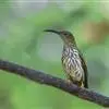 纹背捕蛛鸟:为太阳鸟科捕蛛鸟属的鸟类。是太阳鸟科中体型较大的一种,体重25-45克,体长160-210毫米。嘴粗长而尖且向下弯曲。上体橄榄黄色具黑色中央斑纹。下体淡黄白色满布黑色纵纹,尾具黑色次端斑。…全部>>