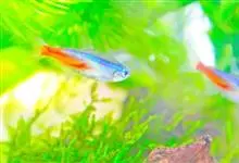 霓虹灯鱼又被称为红绿灯鱼、红莲灯鱼。鱼纲,脂鲤科。原产亚马孙河上游。体长3~4厘米,体形较细,色泽美丽,体上部的绿线,因光线角度不同,有时显出蓝色,与体下部的红线极为协调,又与腹部全红的新红绿灯鱼〔…全部>>