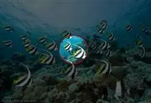 眼斑双锯鱼,背鳍硬棘被橘黄色斑块分割为5-6枚,第4枚最长,约为头长的2.1-2.9倍。胸鳍、臀鳍、背鳍、尾鳍被橘黄色斑块分割部分都具黑缘,黑缘之外还有一透明外缘。体侧3块白斑明显可见,形状不规则,…全部>>