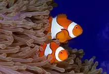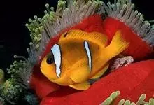 小丑鱼是鲈形目雀鲷科小丑鱼属鱼类的统称。体长仅5—6厘米。身体色彩艳丽,多为红色、橘红色;除透明的胸鳍与软背鳍鳍条外部,其余鳍均为黑色。体形怪异,体色多变,通常体侧有白色条纹。…全部>>