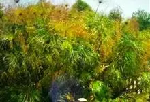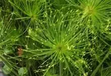 纸莎草是莎草科、莎草属的植物,具有粗壮的根状茎,高达2-3米,茎秆簇生,粗壮,直立,钝三棱形。叶退化呈鞘状,茎秆顶端着生总苞片,呈伞状簇生,总苞片叶状,披针形,顶生花序伞梗极多,细长下垂。瘦果灰褐色,…全部>>