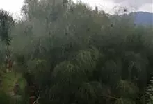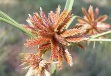 纸莎草是莎草科、莎草属的植物,具有粗壮的根状茎,高达2-3米,茎秆簇生,粗壮,直立,钝三棱形。叶退化呈鞘状,茎秆顶端着生总苞片,呈伞状簇生,总苞片叶状,披针形,顶生花序伞梗极多,细长下垂。瘦果灰褐色,…全部>>