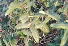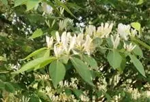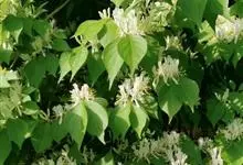 山银花在华南地区野外山林生长。木质藤本,长2~5m。树皮黄褐色渐次变为白色,嫩时有短柔毛。叶对生,卵圆形至椭圆形,长4~8cm,宽3.5~5cm,上面绿色,主脉上有短疏毛,下面带灰白色,密生白色短柔…全部>>