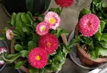 雏菊,菊科雏菊属的多年生或一年生葶状草本植物。其株高约10厘米,叶子呈匙形,顶端是圆的,上半部有疏钝齿或波状齿;总花苞呈半球形或宽钟形,舌状花有一层,管状花较多;瘦果是倒卵形的,扁平,有边脉,…全部>>