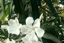 白花夹竹桃是夹竹桃科、夹竹桃属植物夹竹桃的栽培品种。常绿直立大灌木,枝条灰绿色;嫩枝条具稜,被微毛,老时毛脱落。叶3-4枚轮生,下枝为对生,叶面深绿,叶背浅绿色;侧脉纤细平行与中脉成直角;叶柄扁平,…全部>>