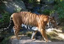 印度支那虎:简称印支虎。是老虎的一个亚种。雄性平均体重185千克,体长2.7米。与孟加拉虎相比,它们的体形较小,毛色更深,身上的条纹更短、更窄;而胃部、咽喉和两颊有较大的白色斑痕。…全部>>