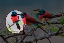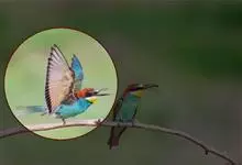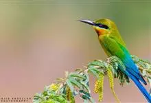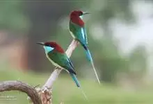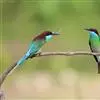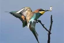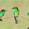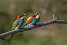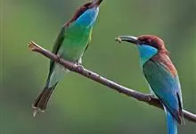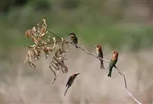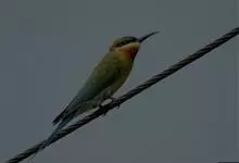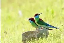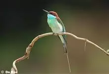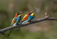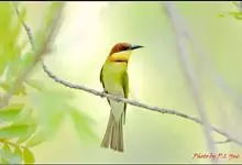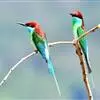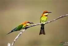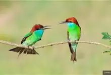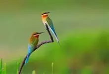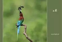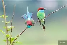 蓝颊蜂虎:是蜂虎科、蜂虎属的鸟类,共有2个亚种。体长27-33厘米,翼展46-49厘米,体重38-50克。嘴形细长而下弯,先端尖,…全部>>