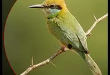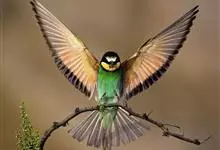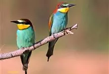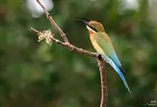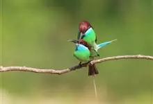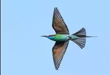 蓝颊蜂虎:是蜂虎科、蜂虎属的鸟类,共有2个亚种。体长27-33厘米,翼展46-49厘米,体重38-50克。嘴形细长而下弯,先端尖,…全部>>