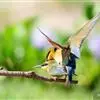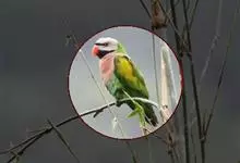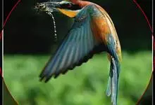 栗喉蜂虎是蜂虎科蜂虎属的鸟类。有热带鸟类羽毛艳丽的特征:喉部是栗红色的,黑色的过眼纹,翅膀和背部是绿色的,尾翼是蓝色的,飞行时翅膀下面的羽毛是橙黄色的,在阳光的照射下,它们全身闪烁着金属般的艳丽光泽,…全部>>