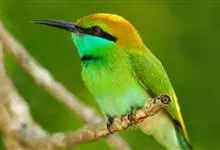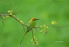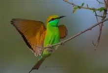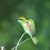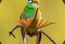 绿喉蜂虎是佛法僧目、蜂虎科的小型鸟类,共有9个亚种。身长22-25厘米,翼展29-30厘米,体重15-20克。喉绿色,额部、头顶至上背为锈红色,其余上体均为亮绿色。中央尾羽延长且端段狭细,…全部>>