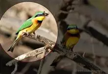 黄喉蜂虎属中型鸟类,体长23-30厘米。喉黄色,其下有一窄的黑色胸带;胸带以下的整个下体蓝绿色。前额蓝白色,具一宽的黑色贯眼纹,头顶至后颈暗栗色,尾蓝绿色,中央尾羽延长,明显突出于其他尾羽。…全部>>