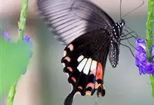 蓝凤蝶,Papilio protenor Cramer,凤蝶科凤蝶属的一种昆虫。翅展95~120mm。翅黑色,有靛蓝色天鹅绒光泽。雄蝶后翅正面前缘有黄白色斑纹,…全部>>