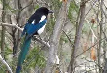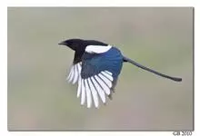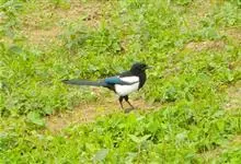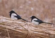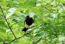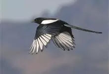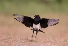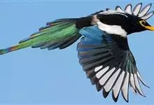 喜鹊:是鸦科、鹊属的一种鸟类。共有11个亚种。体长40-50厘米,雌雄羽色相似,头、颈、背至尾均为黑色,并自前往后分别呈现紫色、绿蓝色、绿色等光泽,双翅黑色而在翼肩有一大形白斑,尾远较翅长,呈楔形,…全部>>