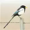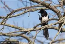 喜鹊:是鸦科、鹊属的一种鸟类。共有11个亚种。体长40-50厘米,雌雄羽色相似,头、颈、背至尾均为黑色,并自前往后分别呈现紫色、绿蓝色、绿色等光泽,双翅黑色而在翼肩有一大形白斑,尾远较翅长,呈楔形,…全部>>