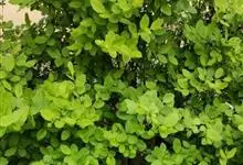 金叶女贞是木樨科女贞属木本植物。叶片为革,椭圆形或卵状椭圆形,新叶金黄色,老叶黄绿色至绿色;花为两性,呈筒状白色小花;果实为椭圆形,内含一粒种子,颜色为黑紫色。花期5—6月,果期10月。…全部>>