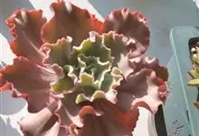女王花笠,又名扇贝石莲花、女王花舞笠,是景天科拟石莲花属的多肉植物。由美国加利福尼亚州的育种师Dick Wright于1964年培育。特征是呈大波浪状褶皱的红色叶缘和气质高贵的粉紫色调。…全部>>