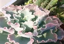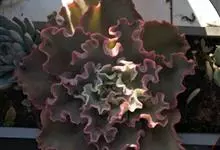女王花笠,又名扇贝石莲花、女王花舞笠,是景天科拟石莲花属的多肉植物。由美国加利福尼亚州的育种师Dick Wright于1964年培育。特征是呈大波浪状褶皱的红色叶缘和气质高贵的粉紫色调。…全部>>