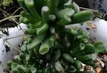 筒叶花月,是景天科青锁龙属的多年生草本植物。植株多分株,灌木状,茎较粗壮,圆柱形,表皮灰褐色;叶片肉质,互生,呈圆筒状,簇生于茎或分枝顶端,叶端呈斜截形,截面为椭圆形;花呈星状,淡白色;花期秋季。…全部>>