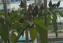 观赏辣椒,观赏辣椒根系发达,茎直立,茎部木质化,分枝能力强,分枝习性为双叉状分枝和三叉分枝。小果类型的植株高大,分枝多,大果类型的则相反。单叶互生,全缘,卵圆形,叶片大小、色泽与青果的大小色泽有相关性。…全部>>