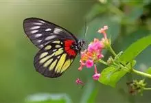报喜斑粉蝶是粉蝶科斑粉蝶属的一种动物,又名红肩粉蝶、藤粉蝶等。幼虫群集性很强,从同一卵块孵化出的幼虫,幼龄期全部群集在一起取食,高龄幼虫常分散成小群。幼虫群集危害叶片,造成秃枝,严重者可将树吃成光杆,…全部>>