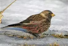 粉红腹岭雀:为燕雀科岭雀属的鸟类。体重25-34克,体长150-182毫米。是一种中等体型的深色岭雀。两翼及下体玫红色。东北亚种的雄鸟额、顶冠及脸灰;上背黄褐;上体深褐,…全部>>