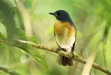 山蓝仙鹟:小型鸟类,体长13-15厘米。雄鸟额基和眼先黑色,颏橙棕色,仅颏尖为蓝黑色,喉、胸、上腹和两胁亦为橙棕色,下体白色范围较小,仅局限于下腹和尾下覆羽。雌鸟上体少黄色,颏、喉、胸概为锈红色,…全部>>