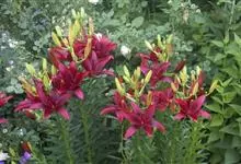 山丹是百合科百合属的多年生草本植物。鳞茎卵形或圆锥形,鳞片长圆形或长卵形,白色;叶散生茎中部,线形,边缘有乳头状突起;花单生或数朵成总状花序,花鲜红色,常无斑点,花被片反卷,…全部>>