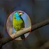 蓝喉拟啄木鸟,是须鴷科、拟啄木鸟属的鸟类。蓝喉拟啄木鸟为小型鸟类,体长20-23厘米。前额至头顶鲜红色,其上有一宽阔的黑色横带,将此红色分为前后二块;头侧、颏、喉蓝色,下喉两侧各具一红色点斑。…全部>>