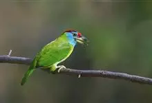 黑眉拟啄木鸟,为须䴕科、拟啄木鸟属的小型鸟类,体长20-25厘米,外形和金喉拟啄木鸟非常相似,但具粗著的黑色眉纹,头侧和耳覆羽以及下喉蓝色而不为银灰色,前颈两侧各有一块鲜红色斑。全部>>