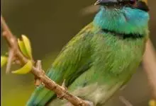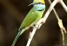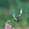 绿喉蜂虎是佛法僧目、蜂虎科的小型鸟类,共有9个亚种。身长22-25厘米,翼展29-30厘米,体重15-20克。喉绿色,额部、头顶至上背为锈红色,其余上体均为亮绿色。中央尾羽延长且端段狭细,…全部>>