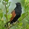 褐翅鸦鹃,是鹃形目鸦鹃科鸦鹃属的鸟类。褐翅鸦鹃的身体为黑色;头颈和胸带蓝紫色金属光泽并具黑亮的羽干纹,下胸至腹部泛金属绿光泽;两翼和肩部为棕栗色,外侧飞羽具暗色羽端,尾羽闪铜绿色光泽;虹膜赤红色,…全部>>