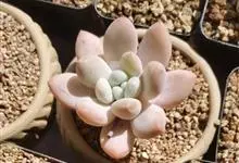 奥普琳娜为风车石莲属多肉植物,肉质叶互生,呈莲花状排列,整体颜色呈现粉粉的淡蓝色,叶缘和尖端容易泛红,非常漂亮,…