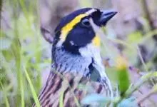 黄眉鹀是雀形目鹀科鹀属鸟类,体型中等偏小。雄鸟头部主要为黑色,冠纹白色,眉纹前段黄色而后段白色,喉白而具黑色细碎纵纹;上体主要为栗褐色,背具黑褐色纵纹;翼主要为黑褐色,…全部>>