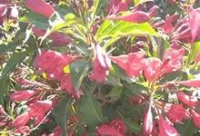 红王子锦带花是忍冬科锦带花属的落叶开张性灌木。株高1 -2米;嫩枝淡红色,老枝灰褐色;单叶对生,呈椭圆形,先端渐尖,叶缘有锯齿,红枝及叶脉具柔毛;花冠漏斗状钟形,花冠筒中部以下变细,聚伞花序,…全部>>