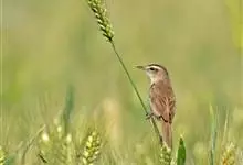 黑眉苇莺:体重7-11克,体长11-13厘米。上体橄榄棕褐色;眉纹淡黄色,杂有明显黑褐色纵纹;第2枚初级飞羽较第6枚短;下体白色,两胁暗棕色。虹膜暗褐色;嘴黑褐色,下嘴基淡褐色;脚暗褐色。…全部>>