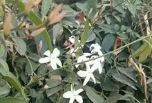 素馨花,木犀科素馨属多年生的攀援灌木植物。攀援灌木,小枝圆柱形,具棱或沟;叶对生,叶轴常具窄翼,小叶片卵形或长卵形;聚伞花序顶生或腋生,花序梗长,苞片线形,花萼无毛,裂片锥状线形,花冠白色,…全部>>