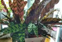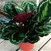 孔雀竹芋:竹芋科,肖竹芋属多年生常绿草本植物。植株挺拔株高可达60厘米。叶柄紫红色, 叶片薄革质,卵状椭圆形,叶面上有墨绿与白色或淡黄相间的羽状斑纹,就像孔雀尾羽毛上的图案,因而得名。…全部>>
