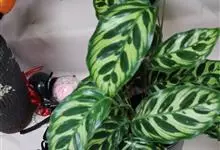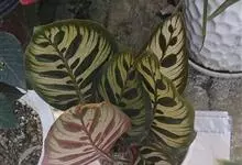 孔雀竹芋:竹芋科,肖竹芋属多年生常绿草本植物。植株挺拔株高可达60厘米。叶柄紫红色, 叶片薄革质,卵状椭圆形,叶面上有墨绿与白色或淡黄相间的羽状斑纹,就像孔雀尾羽毛上的图案,因而得名。…全部>>