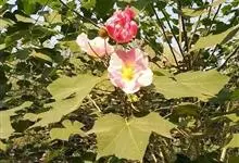 木芙蓉,锦葵科木槿属落叶灌木或小乔木。小枝上有细绒毛;叶片为卵状心形,托叶为披针形,常早落;花单生,花萼为钟形,花冠初为白色或淡红色,后逐渐变为深红色;果实为扁球形,有淡黄色的毛附着。花期8到10月。…全部>>