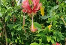 吊灯扶桑 Hook. f.)为锦葵科木槿属的常绿灌木。高达3米;小枝常下垂;叶椭圆形或长圆形,先端尖或短渐尖,基部楔形;花梗细,无毛或具纤毛,中部具节;蒴果长圆柱形;花期全年。因似灯笼高挂,…全部>>