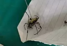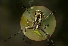 棒络新妇,是蜘蛛目肖蛸科络新妇属节肢动物。雄蛛体长约6毫米,背甲褐色,具黑色纵斑;步足黑色,有橙色环纹;腹部筒形、褐色,有黄斑;雌蛛体长约21毫米,背甲黑色,有大量银色长毛;触肢黄色,步足黑色,…全部>>