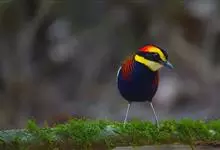 蓝喉蜂是蜂虎科蜂虎属鸟类。体长26-28厘米,嘴长而弯曲,有明显细长的中央尾羽。头部、颈部和背部为巧克力色,有黑色眼纹。喉部、腰部和尾羽为蓝色。腹部和两翼为绿色。幼鸟外观似成鸟,头部、颈部和背部为绿色,…全部>>